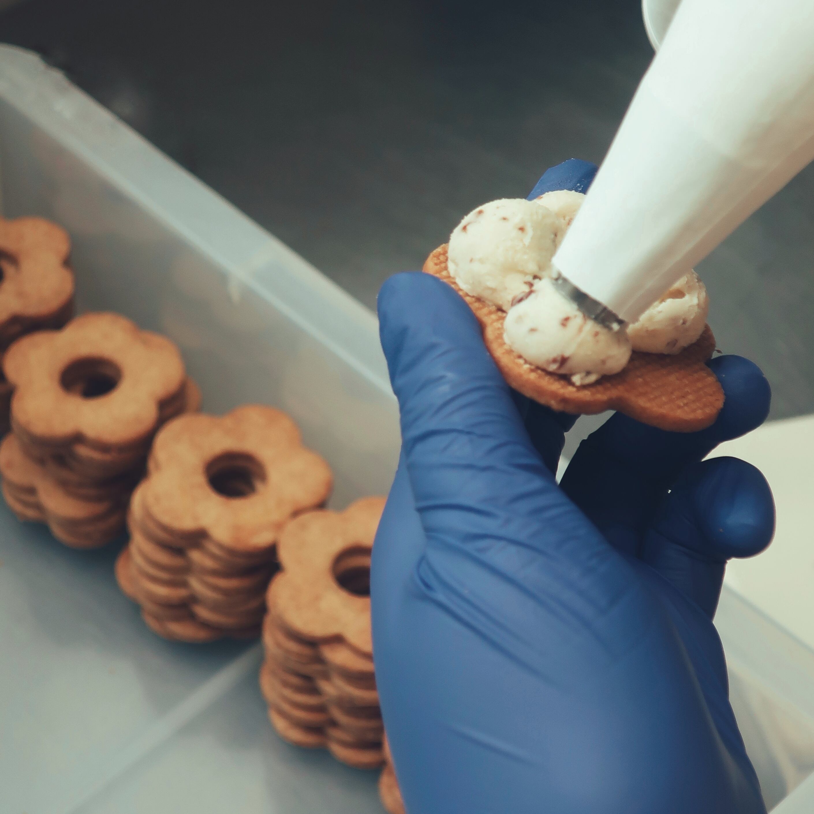ひとつずつ丁寧に手でクリームを絞り、袋詰め、冷凍でお届けします